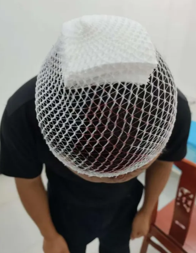 \n\t他的头被包扎了起来