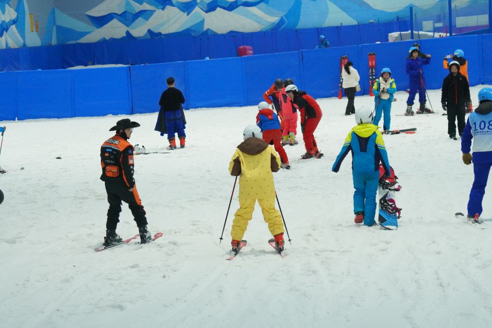 昆明热雪名胜室内滑雪场雪谈上的喜欢者↑