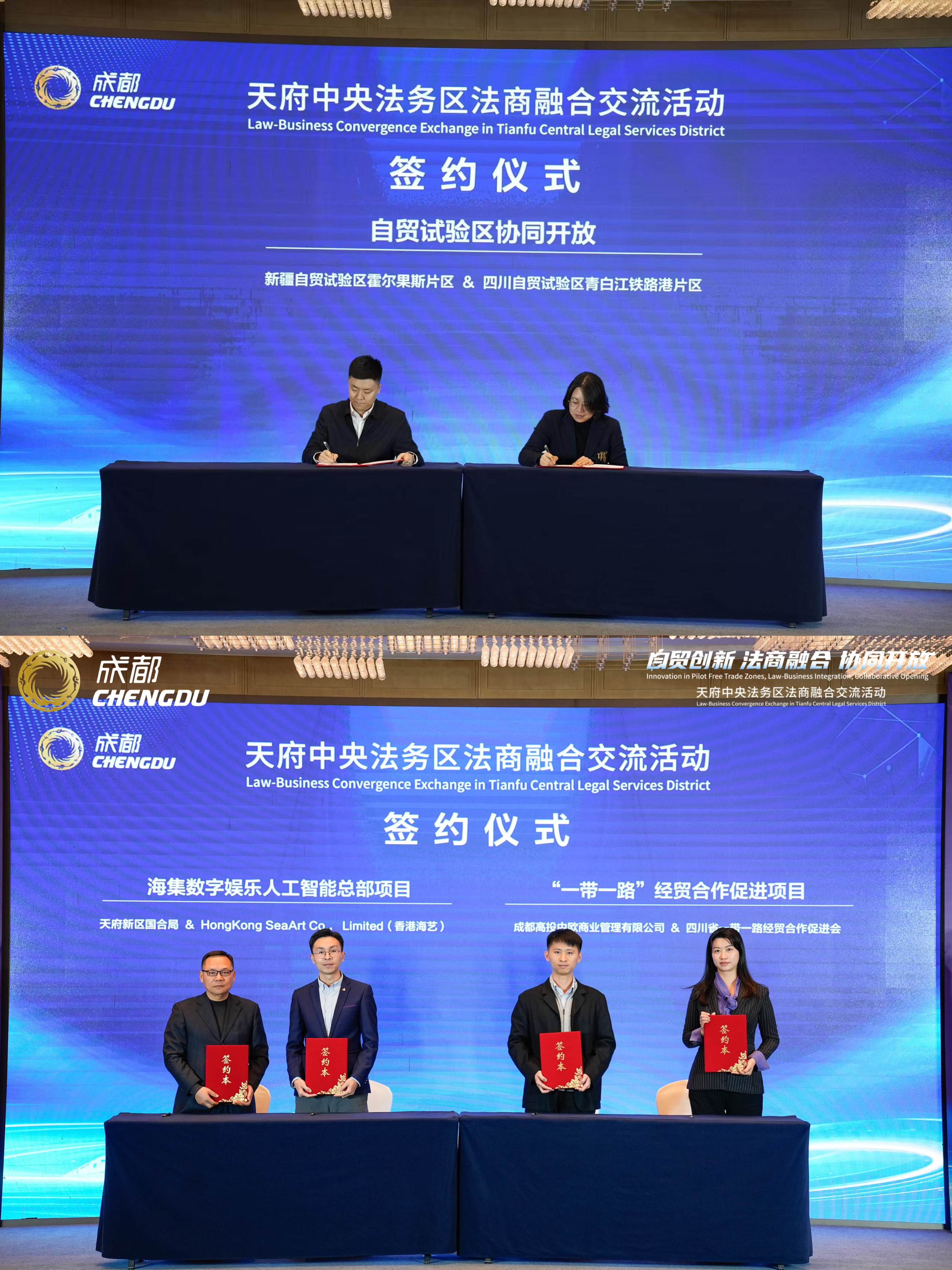 现场,聚焦自贸磨真金不怕火区协同绽放,新疆霍尔果斯自贸区与青白江铁路港片区坚决绽放合营公约;天府新区国合局与HongKong SeaArt co., Limited(香港海艺)就海集数字文娱东说念主工智能总部样式坚决合营公约;成齐高投中欧交易料理有限公司与四川省一带一起经贸合营促进会坚决“一带一起”经贸合营促进项贪图合营公约。