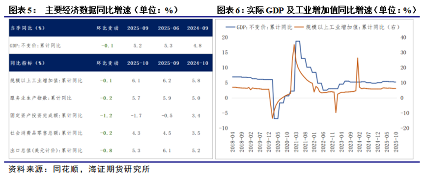 国内经济层面,2025年8月以来,宏不雅经济数据骄矜出边缘放缓迹象,10月数据露出尤为显着:工业增多值、做事业坐褥指数增速同步放缓,固定钞票投资、社会花费品零卖总数、出口等需求端宗旨均出现边缘走弱,房地产销售数据也未见显着改善,骄矜经济稳增长压力有所浮现。在此布景下,宏不雅战术加码的必要性迟缓上涨,为后续LPR下调提供了实践需求扶持。